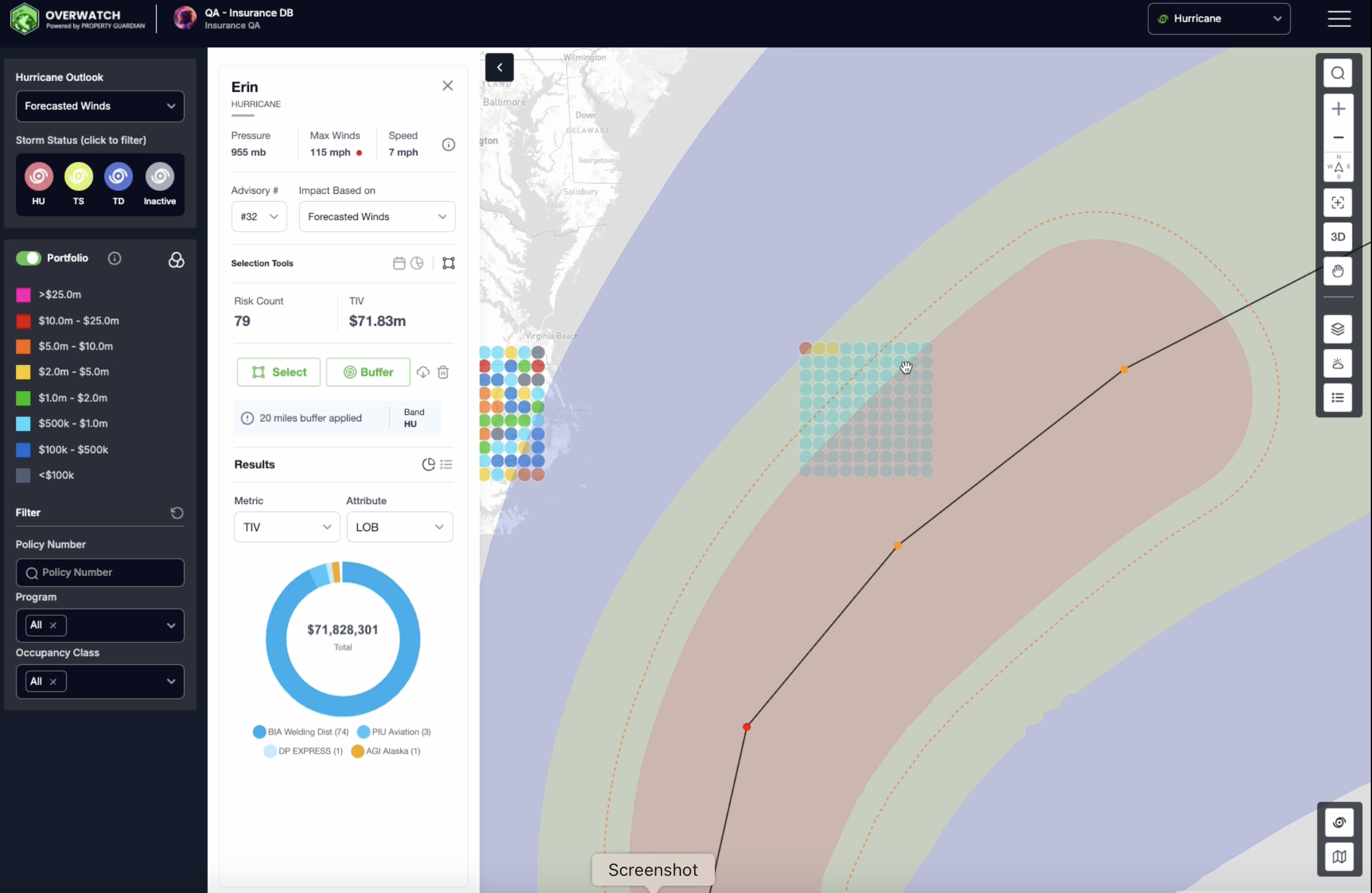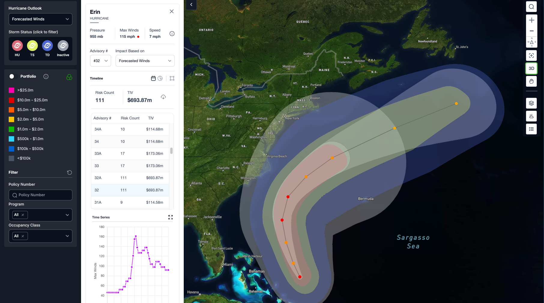 - Portfolio Exposure View: Instantly quantify the number and value of properties forecasted to be in harm’s way — and prioritize accordingly.